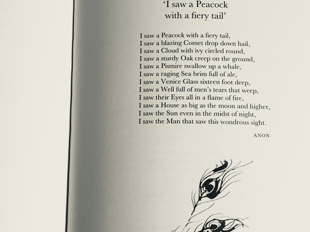 *I have learned writing does not have to be autobiographical to be written. Based on my learning about Shakespeare’s Sonnets and the structure of one of my favourite poems, “I saw a Peacock with a fiery tail,” I was inspired to write the above experimental poem. Thank you for reading.